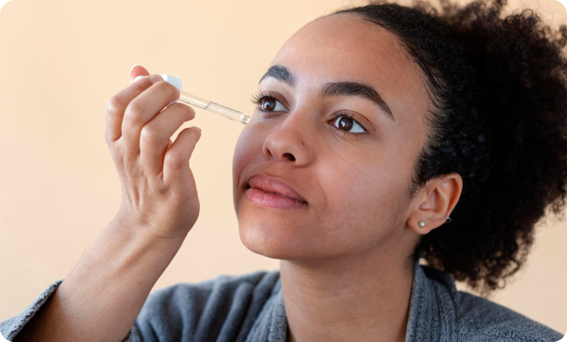 Apply: Gently apply the serum around your eyelids and below the eyes.
