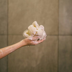 Apply Scrub – Squeeze a small amount of foaming scrub onto your hands or a loofah.