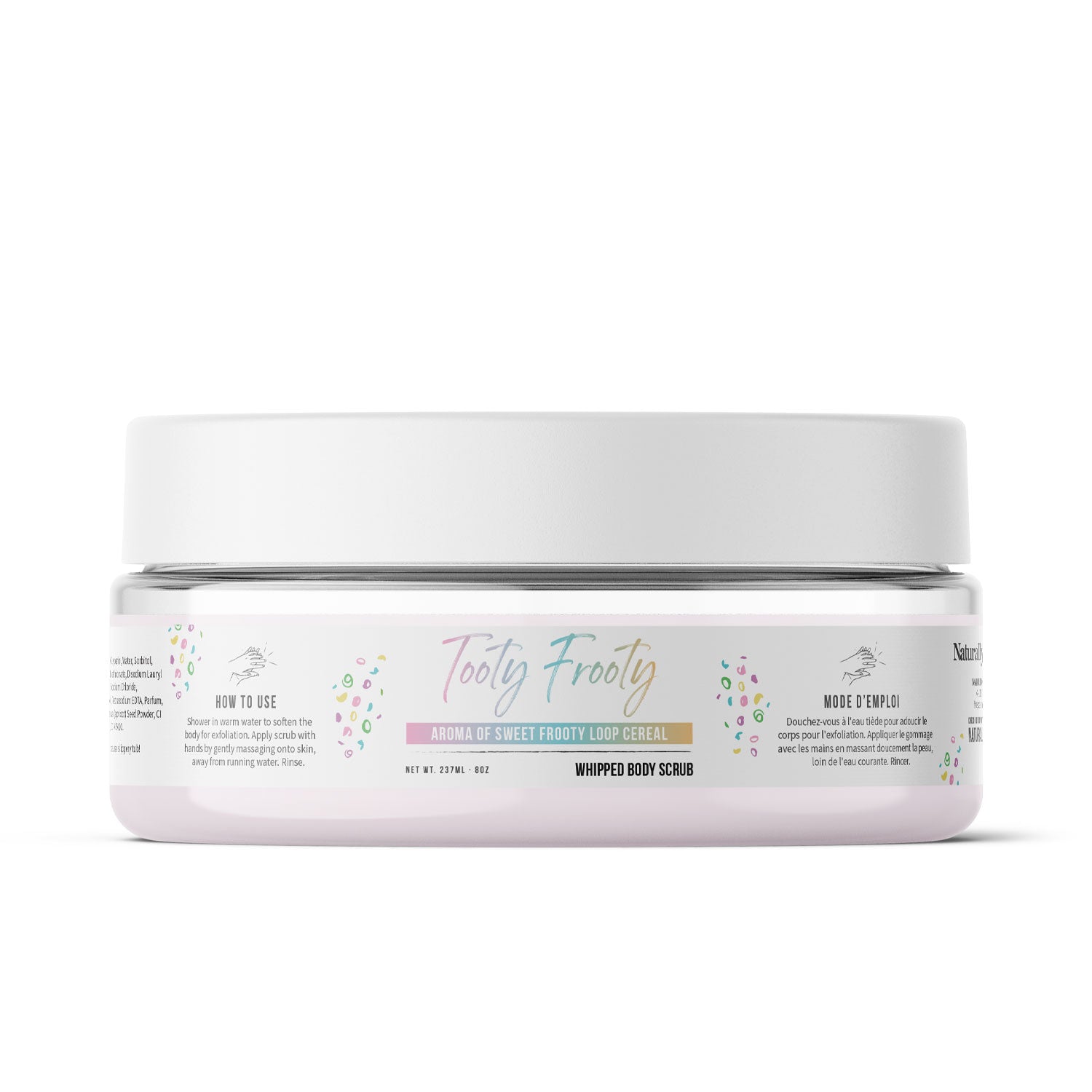 For the kids in all of us, the tooty frooty body scrub brings fun to the tub. The mouth watering fragrance of a beloved cereal paired with a soapy cleanse is almost too good to be true. This product contains 8 oz.