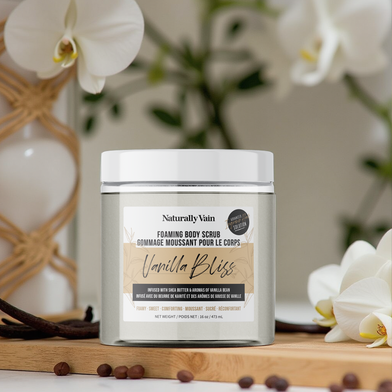 Vanilla Bliss: Hydrating + Nourishing Foaming Body Scrub for Dry Skin Types