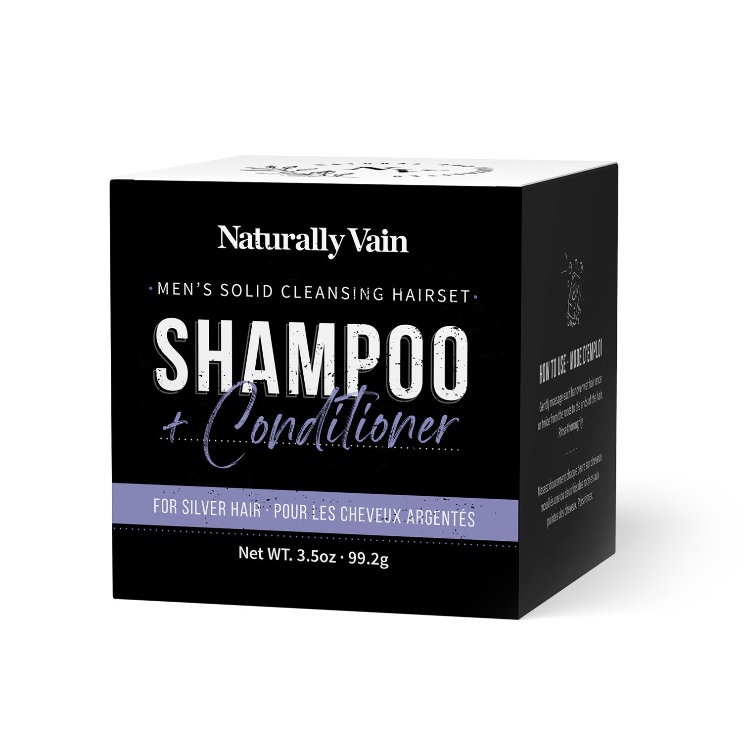 The Silver Fox Box includes one shampoo bar and one conditioner bar, both designed to maintain vibrant, healthy hair.